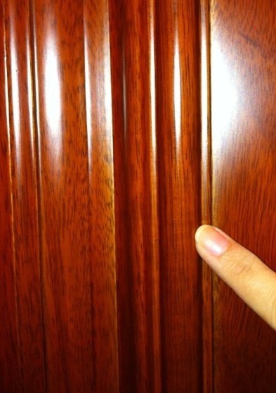 純正的實木門表面木紋自然、流暢,而假冒的實木門經常采用表面貼紙做飾面。消費者可以通過仔細觀察木門的表面紋路,如出現拼接、紋路均衡相等、重復,這類木門大多不是意義上的實木門。
