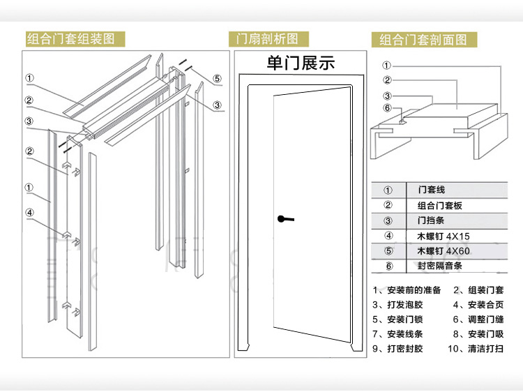 2、將門鎖、合頁(yè)安裝在門扇上。